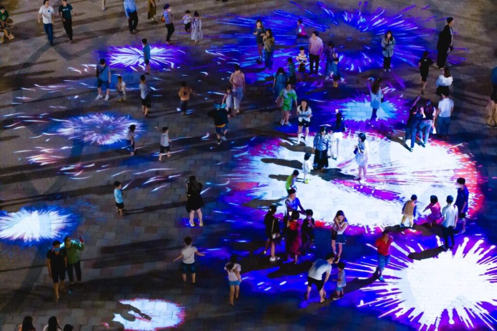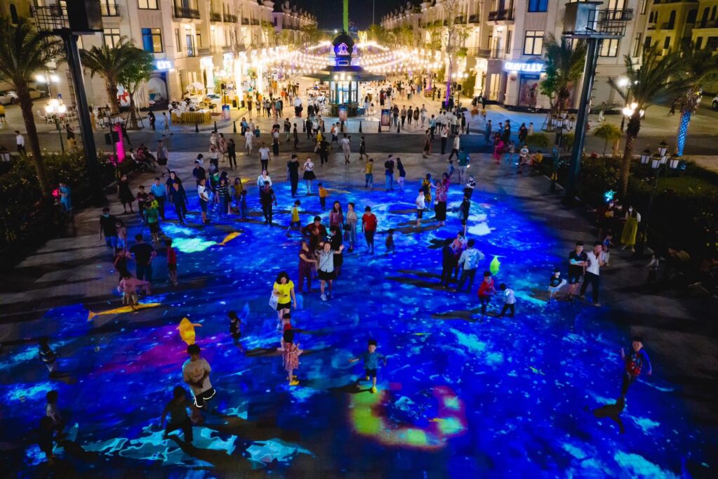 Đi đâu ở ocean city? Trải nghiệm tương tác ánh sáng ảo Mapping tại Ocean City mang đến một không gian nghệ thuật sống động, kết hợp giữa ánh sáng, âm nhạc và kiến trúc. Được thiết kế để tạo ra một trải nghiệm tương tác và mê hoặc, ánh sáng ảo Mapping sử dụng công nghệ tiên tiến để chiếu hình ảnh lên các bề mặt khác nhau, biến những không gian bình thường thành những tác phẩm nghệ thuật sống động.